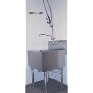 Residential Utility / Laundry Room Sink, Free Standing, 18" x 18" x 14" Bowl, 18" x 21.5" overall size, 1 compartment, '600' series 16 gauge type 304 stainless steel, stainless steel tubular legs, 1" adjustable plastic bullet feet, satin finish, stainless steel basekt drian included. ( Advance Tabco - 6-81-18RE )