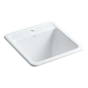 Finish/Color:White, Faucet Hole Spacing:1 Hole KOHLER cast iron Acid-resistant enamel finish Single compartment Basin depth: 12-5/8